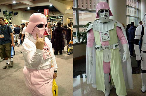 Dobra nowina – The Pink Master is alive!!! – Różową mutację Dartha Vadera po raz pierwszy miałem okazję zauważyc dobrych 7 lat temu. Kilka lat później kiedy pokazywałem go dziatkom w czasie warsztatów w Zachęcie ściągnąłem na własną głowe oskarżenie o profanację. Miło mi dziś poinformować państwa, że fenomen pozostaje żywy. Myślę, że róż potraktować możemy jako paralelny do bieli antonim czerni i że podobne konwersje (różowi esesmani, różowe wdowy, różowi kuratorzy etc.) mogą być uznane za naturalne. Umieszczone poniżej zdjęcia (znalezione w sieci) dokumentują jego dwukrotne cudowne pojawienia się na targach komiksu. ////// Buena Noticia – The Pink Master is alive!!! Hace alrededor de 7 anos note por primera vez la mutación rosa de Darth Vader. Una vez hasta me han acusado de profanación cuando mostré la poco convencional figurita del Maestro Oscuro a los ninos en Galeria Zacheta. Me da gusto anunciarles que el fenómeno sigue vivo. Supongo que rosa paralelo al blanco lo podemos considerar el antónimo del negro y que semejantes conversiones (nazis rosa, viudas rosas, curadores rosas etc.) podemos considerar naturales. Las siguientes imágenes, encontradas en la Web, muestran dos casos de su aparición en convenciones de comic. ////// Good news – The Pink Master is alive!!! – It’s around 7 years that I noticed for the first time the pink mutation of Darth Vader. I was accused once of profanation when I showed his not so conventional action figure to the childern in Zacheta Gallery. I am glad to announce that this phenomenon still goes on. I suppose the pink is sort of parallel to white antonym to the black and that similar conversions (Pink Nazis, Pink Widows, Pink Curators etc.) we should consider natural. Following pictures, found on the web, are from two different comic conventions.