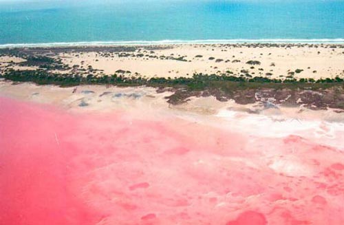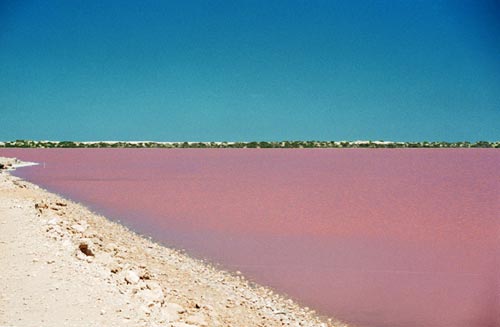 Postanowiłem stopniowo uzupełniać blog co ciekawszymi materiałami zebranymi w roku ubiegłym a prezentowanymi już w dokumentacji na wystawie – dzisiaj: Pink Lakes – a więc: są na naszej planecie prawdziwe różowe jeziora. Najsłynniejsze znajdują się w Senegalu (Retba Lake) i w Australii (w okolicach Meningie). Za różowy kolor odpowiedzialny jest czerwony pigment (Beta-karoten) obecny w aldze Dunaliella Salina. Inna natywna a równie wytrzymała na wysokie zasolenie wód jest jej siostrzyczka Micronucleus Vaginatus. Różowe jeziora i laguny występują rówież w USA i na Jukatanie w Mexyku. Mini esej na ich temat specjanie dla PND! napisały dwie biolożki z uniwersytetu w Austin: Laura Gonzalez i Laura Torrentera. W kontekście sztuki warto wspomnieć Spiral Jetty Roberta Smithsona zrealizowaną w Wielkim Słonym Jeziorze w Utah. ////// Me decidí a completar este blog con algunos materiales recolectados en ano pasado y ya una ves presentados en la documentación incluida en display en previas exposiciones PND! Hoy: Pink Lakes – así que: en nuestra planeta si existen verdaderos lagos rosas. Los mas famosos se ubican en Senegal (Retba Lake) y en Australia (cerca de Meningie). El color se debe al pigmento rojo (Beta-caroteno) de la alga Dunaliella Salina. Otra nativa y aguantadora habitante de aguas altamente saladas es su hermanita Micronucleus Vaginatus. Los lagos y lagunas rosas hay también en Estados Unidos y en Yucatán en México. Un mini ensayo sobre estas prepararon especialmente para PND! dos biólogas de la Universidad de Austin: Laura González y Laura Torrentera. En el contexto de arte vale la pena recordar Spiral Jetty de Robert Smithson realizado dentro del Gran Lago Salado en Utah. ////// I decided to complete this blog with some materials from previous research presented already in the book displayed on the exhibition – today: Pink Lakes – so: They do exist real pink lakes on our planet. The most famous ones are in Senegal (Retba Lake) and in Australia (near Meningie). For the color is responsible red (Beta-carotene) pigment present y the alga Dunaliella Salina. Other native habitant of these highly salty waters is her sister Micronucleus Vaginatus. Pink lakes and lagoons are also in US and Yucatan Mexico. Mini-essay on this subject was prepared specially for PND! by two biologists from Austin University: Laura Gonzalez and Laura Torrentera. In the context of art it’s worth to mention Robert Smithson Spiral Jetty located in Great Salt Lake in Utah.