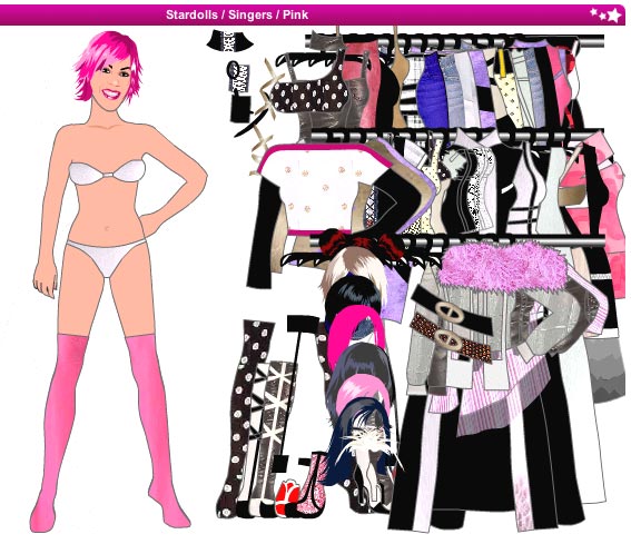 Skoro już jesteśmy przy lalkach to jakiś czas temu trafiłem na szwedzką stronę Stardoll.com (Your paperdoll haeven) prezentującą virtualne laleczki do przebierania. Stardolls, poza szeroką gamą gwiazd popu, oferuję również inne celebrities takie jak aktorzy, atleci czy arystokraci. Pomysł zabawny szkoda tylko, że autorzy (Liisa) nigdzie nie wspominają, że jest on niemal dosłowną kopią japońskiego fenomenu Kisekae Dolls. Szwedzkim laleczkom przyznać trzeba, że są względnie podobne do swych pierwowzorów a zestaw postaci jest naprawdę imponujący (ponad 400), brak im jednak lekkości i wdzięku a dostępna dla nich virtualna garderoba wydaje się być mocno konserwatywna przynajmniej w porównaniu z niekotrolowanymi wybuchami japońskiej wyobraźni. Sam site ma charakter pół-komercyjny: dostęp do pełnej gamy lalek i ubrań wymaga wykupienia członkowstwa VIP (You need to be a member in order to become Superstar). Niezależnie od wszystkich tych mankamentów polecam odwiedziny – jest w czym wybierać. W naszej rzeczywistości pomysłem nie od rzeczy wydaje się stworzenie podobnej stronki z postaciami publicznymi – możliwość przebrania np. Ministrów Edukacji w różowe sukienki mogła by być zbawienna jeżeli nie dla całości klimatu politycznego w kraju to chociaż dla zszarganych nerwów nauczycieli gejów. ////// Hace tiempo encontré en la red una pagina sueca de munecas virtuales para vestir: Stardoll.com (Your paperdoll haeven). Stardolls, como indica el nombre, esta enfocada en las celebridades – en su propuesta ofrece a parte de las estrellas pop también actores y modelos, hasta la realeza. La idea esta divertida solo lastima que los autores (Liisa) nunca mencionan que su sistema parece casi una copia directa del KiSS Japonés. Hay que admitir que las munecas suecas están parecidas a sus prototipos y que la oferta esta realmente impresionante (mas de 400 personajes) a pesar de esto siento que les falta ligeridad y encanto, también su guardarropa parece ser bastante conservadora por lo menos en comparación a exuberantes explosiones de fantasía japonesa. El mero sitio tiene carácter semi-comercial: el acceso a la completa gama de munecas y vestidos se puede obtener solo después de adquirir la membresía VIP. (You need to be a member in order to become Superstar). De cualquier manera recomiendo la visita – hay de donde escoger. Por otro lado en mi país últimamente cada vez mas atormentado por la moches de actual gobierno parece buena idea crear un sitio parecido con personajes públicos – la posibilidad de vestir de rosa por ejemplo nuestros Ministros de Educación Publica podía alivianar algo de la tensión social por lo menos entre los últimamente amenazados maestros gay. ////// Some time ago I find in the web Swedish page with virtual dressing dolls: Stardoll.com (Your paperdoll haeven) The name indicates its focus on celebrities – in Stardoll stock you will find a part of pop stars also actors, models and even royalty. Funny idea, just shame that the authors (Liisa) did not mention at any point that they system is almost direct copy of Japanese KiSS. I must to admit that Swedish dolls look pretty alike the actual prototypes and that the stock is astonishing (around 400 characters) but at the same time I feel that they lack of lightness and charm, also the wardrobe look pretty conservative at least in comparison to exuberant explosions of Japanese fantasy. The site itself has half-commercial character: the full access to all dolls and clothes you can obtain once paying the VIP membership (You need to be a member in order to become Superstar). Anyway I do recommend the visit – there is a plenty of options to choose even in the free zone. From the other hand in my country – that lately is each time more tormented by square minds of its leaders – such site with public figures could be a good idea. The opportunity to dress in pink skirt current Ministers of Education could provide certain relief from social tension especially for the recently harassed homosexual teachers.