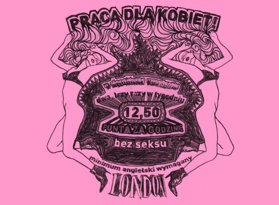Na zestaw rysunków pod prostym a jakże znamiennym tytułem Polskie Dupy natrafiłem w sieci kilka miesięcy temu. Autorem jest o ile dobrze pamiętam dziewczyna – byliśmy nawet przez chwilę w kontakcie mailowym. Pomysł z jednej strony banalny – toniemy na co dzień w powodzi sprośnych anonsów na co nie omieszkali już zaregować znani artyści (Daniel Guzman jako swoją pierwszą pracę na PND! przygotował serię rysunków opartych “polskie” publikacje erotyczne typu “Intim Kontakt” co z kolei natychmiast kojarzyć się może z obrazami Marcina Maciejowskiego – “Olga ma już dużą kolekcję seksownych zdjęć, które robi jej mąż” etc.) z drugiej jednak autor(ka) dierży długopis z wdziękiem a ten jako współczesne medium artystyczne wydaje mi się ciągle jak najbardziej adekwatny. Cała historia zakończyła się chyba na trzech jedynie postach a szkoda bo kreska czujna. Osobiście entuzjazmują mnie najbardziej obrazki z serii London Calling będącej swoistą heraldyką godną etykiet najwykwintniejszych alpag. ////// Hace unos meses encontré este conjunto de dibujos bajo un básico pero bien significativo titulo Los Culos Polacos. El autor si no me equivoco es una chica – estuvimos incluso en el contacto de mail por un momento. La idea por un lado parece banal – estamos hundidos diariamente en el diluvio de publicidad medio-guarrona de los prostíbulos y servicios sexuales lo que nos se quedo si eco en el mundo de arte (Daniel Guzman como su inicial propuesta para el PND! preparo una serie de dibujos basados en revistas pornográficas “polacas” tipo “Intim Kontakt” lo que (por lo menos en Polonia) se puede asociar inmediatamente con los cuadros de Marcin Maciejowski – “Olga ya tiene gran colección de fotos cachondas hechas por su marido” etc.) por otro lado el autor (autora) mantiene el bolígrafo con gracia y este como contemporáneo medio artístico me parece bastante adecuado siempre. Toda la aventura acabo en unos pocos posts lo que considero una lastima ya que el trazo me parece bastante sensible. Personalmente los dibujos que mas me entusiasman pertenecen a la serie London Calling – un especie de heráldica post-porno neo-naca. ////// Few months ago I come across this stet of drawings published on the web under simple and significant title Polish Asses. The author if I am not wrong is a girl – we even have been in mail contact for a short time. The idea from one hand can seem banal – we all drown in the flood of semi pornographic low profile sex biz propaganda what do not escape the eye of artists (Daniel Guzman as his initial proposal for PND! did a series of drawings based on cheep “polish” sex mags like “Intim Kontakt” and such – what (ad least in Poland) leads to immediate association with Marcin Maciejowski works – “Olga has already a big set of erotic pictures taken by her husband” etc.) from the other side the author holds his pen firmly and not without grace, and this one as a contemporary artistic media is still convincing for me. The whole store ended up after just three posts – shame considering the sensitive trace. Personally I like best the drawings from London Calling set – sort of post-porn neo-brute heraldic.