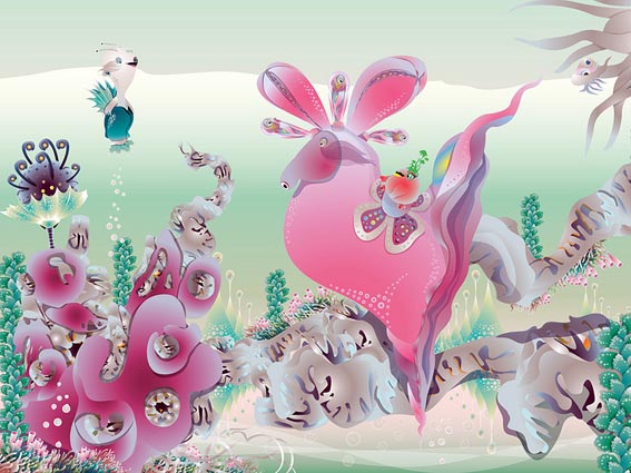 I am on Mexican Caribbean right now and proximity of coral reef reminded me of Floship illustrations that I find on flicker almost a year ago. As I wrote in my first comment to them they bring to my mind Haeckel, O’Keeffe & Max Ernst at once still retaining its very particular character. I admire the way Gerry Wong is able to create his own universe and even that the references to Asiatic “taste” can be find in his drawings he is not at all falling for so tempting but so obvious post-Murakami (post-manga) and post – urban vinyl contemporary vector illustration style. Discovering them gave me a lot of pleasure and satisfaction specially that I find contemporary children illustration a bit stuck between Disney clones (with all its highlights and shadows) and sensitive infantile minimalism (like Maisy etc.) The new American wave of animation (Tartakovsky, McCracken) and Japanese manga are another alternative but although I am hardcore fan of both again they are more contemporary canon that surprise today. For someone who, like me, grew up on Jan Marcin Szancer* and Zbigniew Rychlicki** fantastic creations the consciousness that this is a fertile zone is obvious. Although experimental illustration in polish school went at some point to certain dead ends (I mean drawings that are more satisfactory for parents educated in modern aesthetics than for children) I am sure that this is a space where creators can let they imagination run wild – specially that they “tiny” public is totally open-minded, ready to receive fantasy and has no doubts about existence of the strangest paradises. Floship proves that there is a lot of pink potential to explore in children fantasy universe, much more than Barbie and Pony people commonly use to associate with it. I recommended him to Zuza Ziomecka who short time ago started her new project “Gaga – magazine about beautiful childhood” – I hope that this peculiar life style alike mag for parents can develop towards being show space for such phenomena 🙂