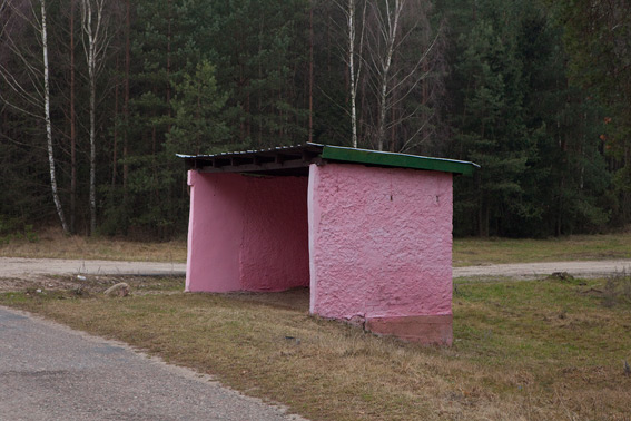 Lonely pink bus stop on the road to Biebrza Swamps. Far West from Lithuanian border 🙂 Touching sample of Pink Povera.