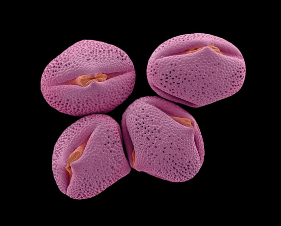 slowly evolving to reveal the ornate and mesmeric structures of the various plant material he examined. To create the eclectic visual imagery – original samples are spluttered with a fine coating of gold and then photographed on a scanning electron microscope. These images are then manipulated using subtle washes and layers of colour to amplify their forms and display the intricate anatomy of pollen, seeds, fruit and leaves with breathtaking clarity. The micrograph artwork is directed solely by nature’s mystery and peculiarity – its richness and complexity – and most palpably, its sheer beauty.”
