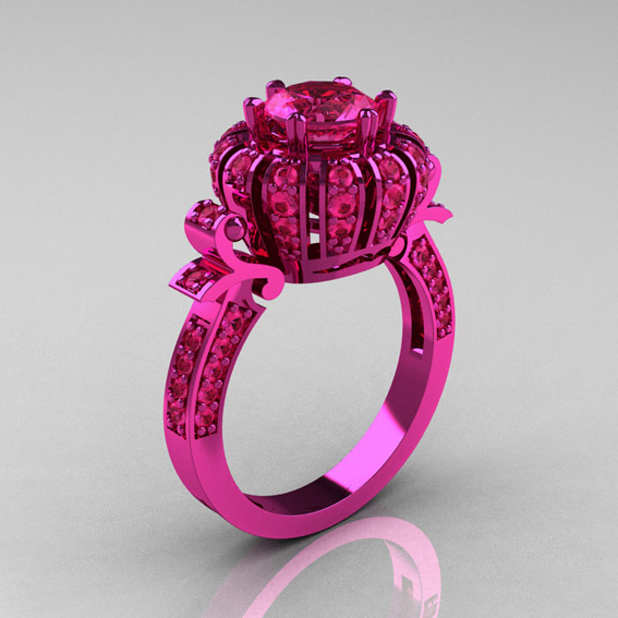 Classic Yeva 14K Pink Gold 1.0 CT Pink Sapphire Crown Solitaire Engagement Ring