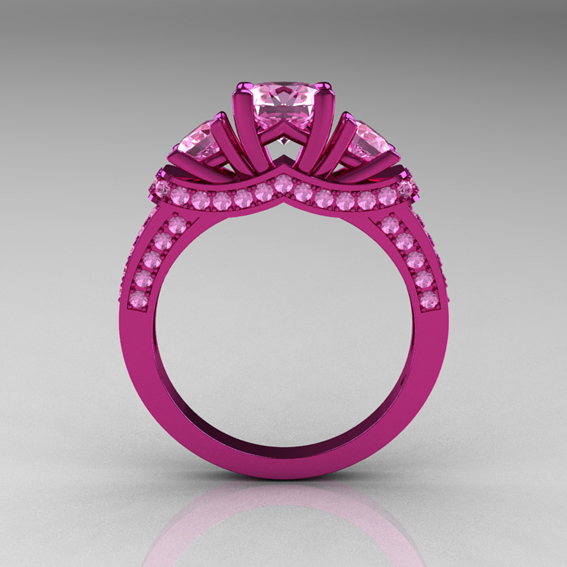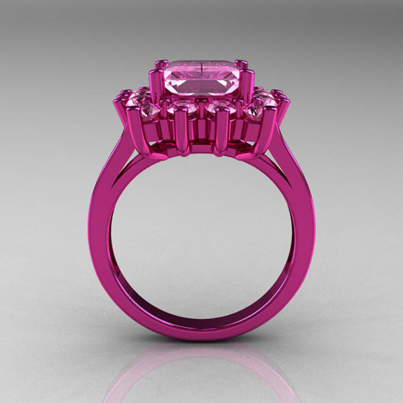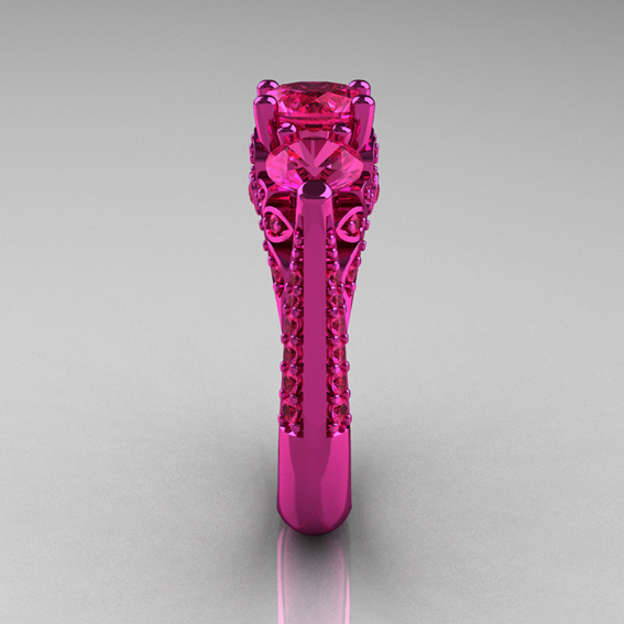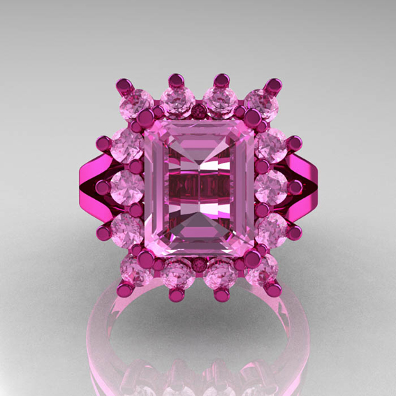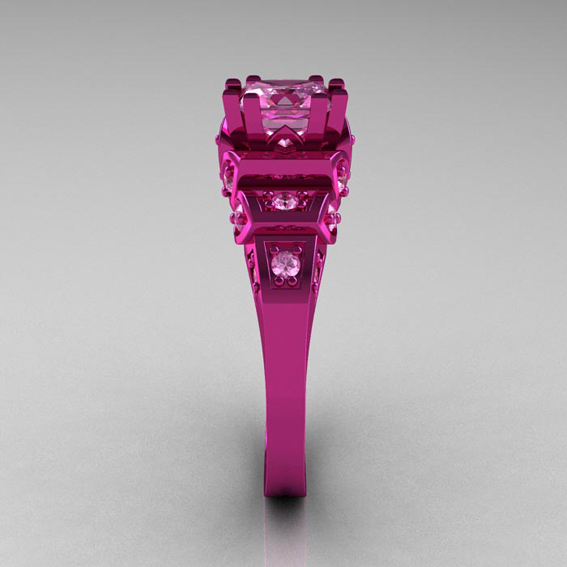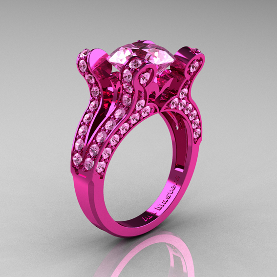 Modern Victorian 14K Pink Gold 4.0 CT Light Pink Sapphire Designer Engagement Ring