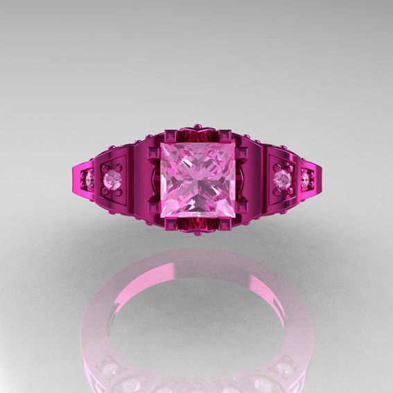 Classic French 14K Pink Gold 1.23 CT Princess Light Pink Sapphire Designer Ring