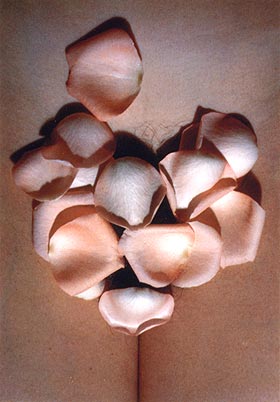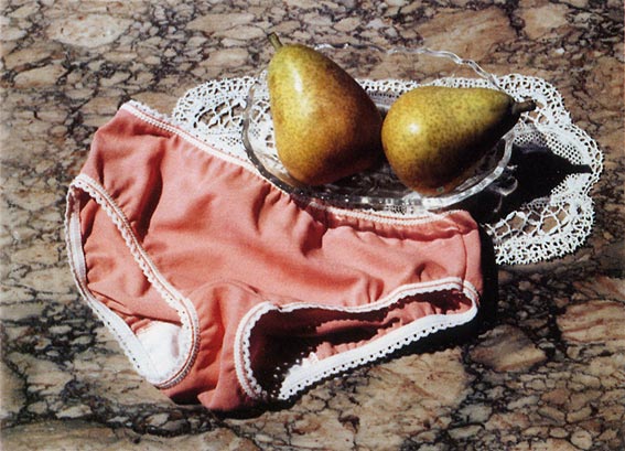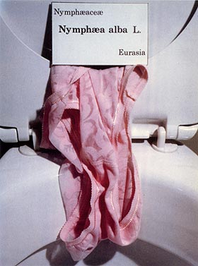 We are all inclined to practise a confusion of the genres, but if this book is ob-scene it is because the ob-scenity has become the subject of my reflections. It was in Berlin during the summer of 1981 that I bought the first pair of young girls’ underpans in a shop that sold everything. After a lady began shouting becouse she could not bear the tought of Scandinavian Alices serving as models, I sought an ironic response to her accusation. despite all interest I had in this pair of underpants, it was not on that particular day that I found a solution to my problem but two months later at Malmö, when I fell under the spell of those “trosor” so prettily embellished with the word “Colour”. From that day on underpans (petite) took their place in the exercice of my art. To the under-garments modest or luxurious, to these adornments which are much more than just protectors of the sex of nymphs or goddesses, I hapily add several products of nature (rose petals, pebbles, shells and most recently the leaves of my dear Alnus glutinosa (L.) Gaerther) with which I decorate the pubis of my models. What more beautiful description of the female sex – nymphaeum – that this small temple with a fountain consecrated to the nymphs. There are two of them, relatively discrete but quite present all the same. This book, I hope, will be seen by many readers; “seen” because there is so very little to read, like a temple, the site of attentive devotions by the author.