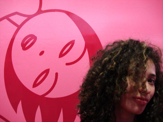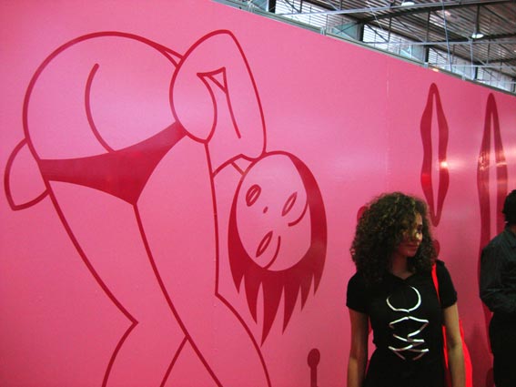 Beautiful Sheily Jimenez in the front of one of my vinyl murals. Erotika Love Store small stand at “Sex & Entertainment” Fair, Mexico City, 2007