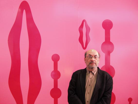 Art critic Francisco Reyes Palma in the front of one of my vinyl murals