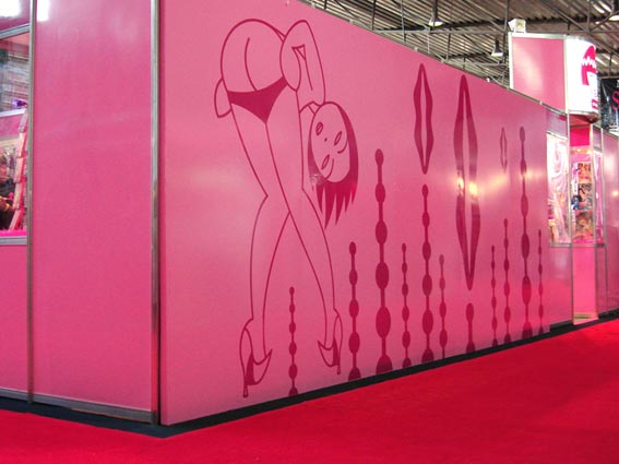 Medium (2.5 x 3 m) mural with some of the icons I initially designed for Erotika in 2005. Erotika Love Store big stand at “Sex & Entertainment” Fair, Mexico