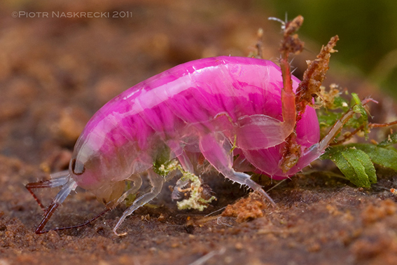Pink, terrestrial amphipod crustacean by Piotr Naskarecki, 2011