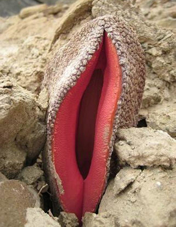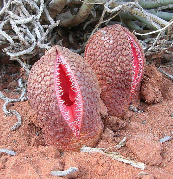 Someone stinky not to be missed: “Hydnora africana is a subterranean, parasitic plant visible only when it blooms. The cage-like flowers imitate the smell and texture of a rotting corpse, attracting insects who become covered in pollen as they struggle to escape the rather tricky prison.” Monsieur Miszka merci pour cette contribution si spectaculaire! I will always keep Hydore in my heart alogside with Titan Arum &