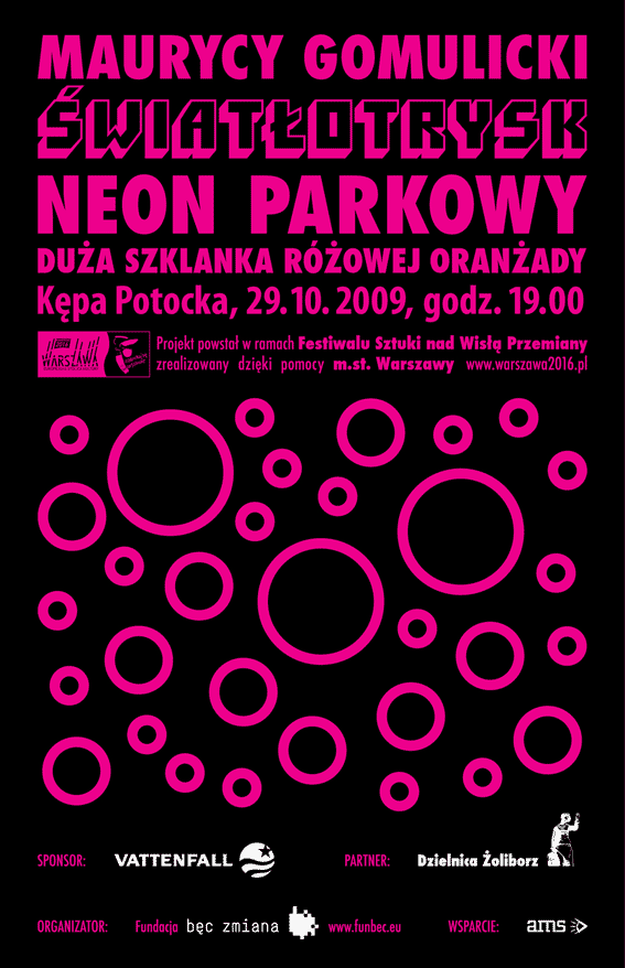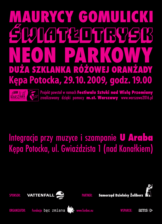 Kiedy na jesieni zeszłego roku zaproponowano mi realizację projektu “parkowego” w Warszawie informując jednocześnie, że stoję wobec możliwości wyboru pomiędzy pracą ze światłem bądź ciepłem, nie miałem wątpliwości, że jest to znakomita okazja dla kolejnej “różowej odsłony”. Mój wybór niemal natychmiast padł na neon jako idealne medium dla takiej interwencji w przestrzeń publiczną.