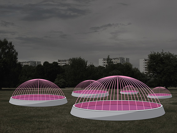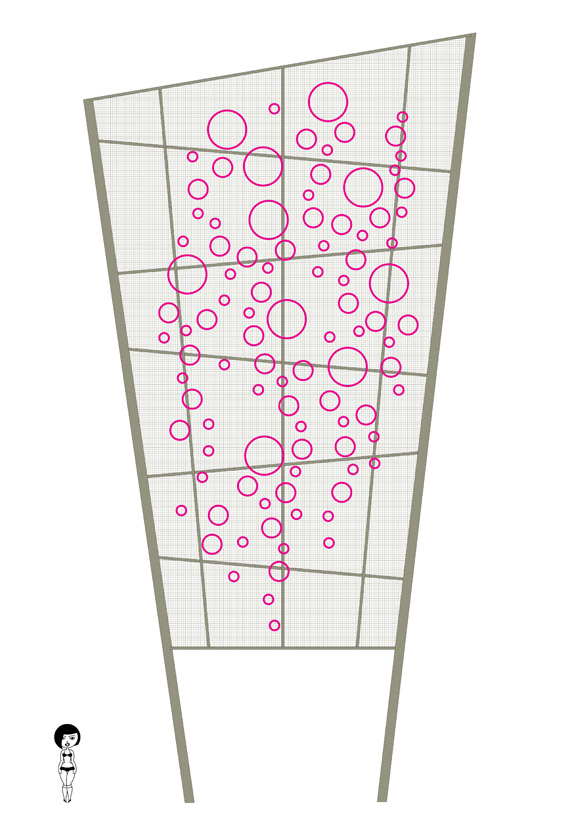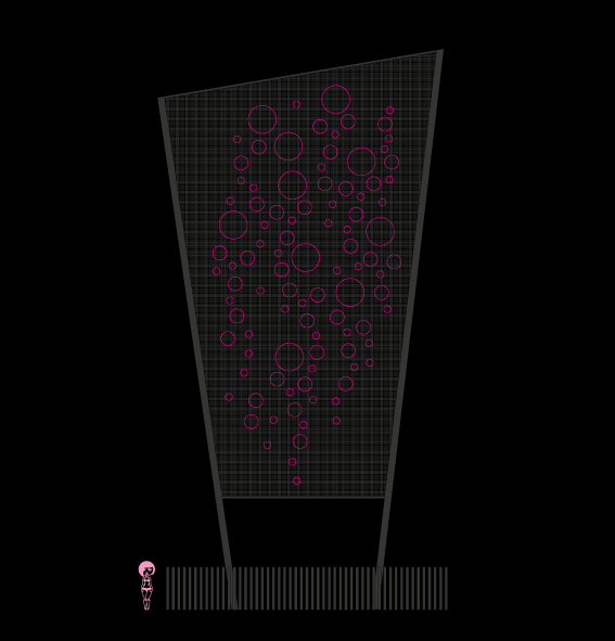 Neon – projekt konstrukcji (aktualnie nieco mniejszy, bez ogrodzenia i prawdopodobnie stojący na tle ściany drzew co zredukuje prezencję konstrukcji w ciągu dnia)
