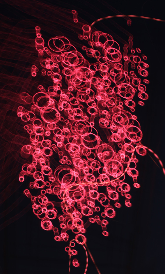 Neon pojawił się w ostatnich dekadach również w przestrzeni sztuki ale na sposób przewrotny – najczęściej demonstrując pustkę piękna czy patetyczność komercyjnej glorii. A jest przecież w nim coś cudownego: nieziemskie światło uwięzione w giętej szklanej rurce, która pozwala wyczarowywać w przestrzeni nocy ulotne rysunki, nieprawdopodobna intensywność barwy, “superkolor” z krainy marzeń i ekstatycznych wizji.